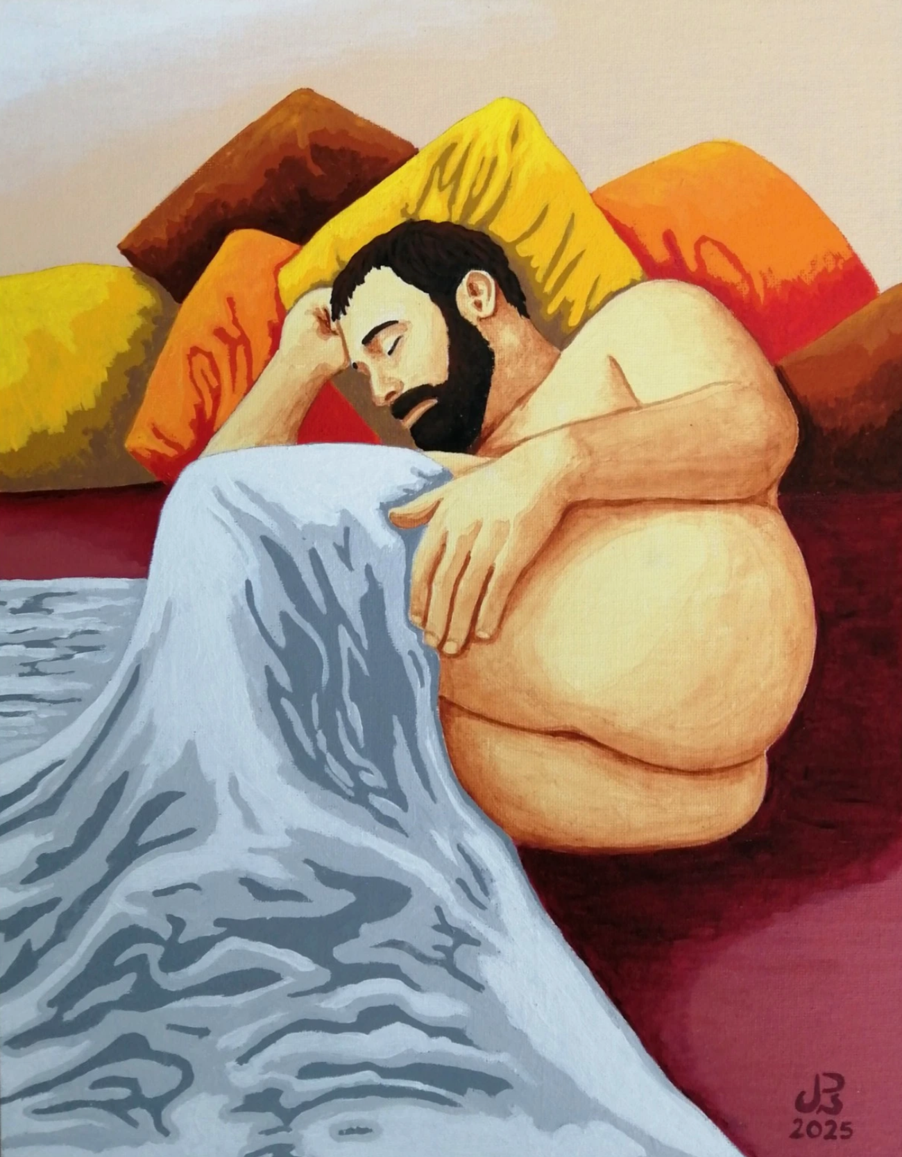 Cette peinture acrylique originale capture la sérénité d'un instant paisible. Des couleurs chaudes et vibrantes contrastent avec la douceur du repos, créant une œuvre à la fois puissante et apaisante. Une pièce unique pour une ambiance zen et raffinée."