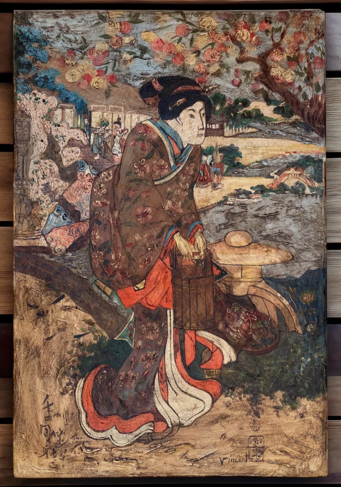 Évoquez le Japon féodal avec cette œuvre envoûtante. Les couleurs riches, les détails exquis et la grâce de la geisha vous transporteront au cœur d'un tableau animé. Une pièce unique pour les amateurs d'art japonais et d'esthétique raffinée