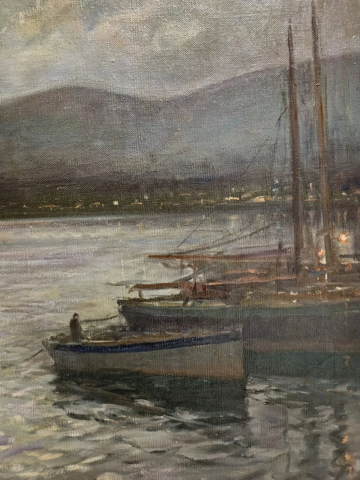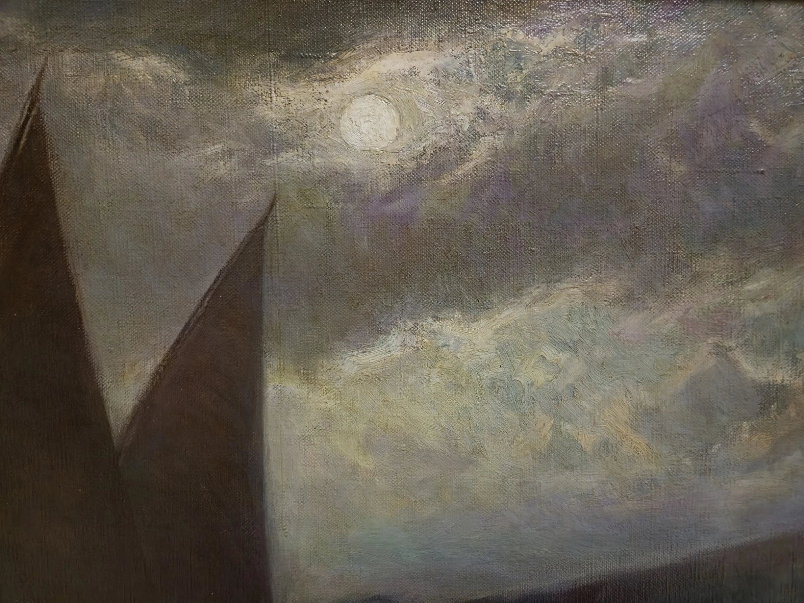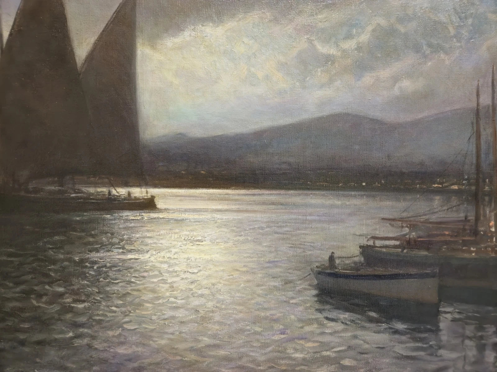 "Sous le clair de lune, un mystère se dévoile. Cette toile saisissante capture l'ambiance magique d'une nuit sur l'eau. Des voiles sombres se détachent sur un ciel nocturne, créant une atmosphère à la fois paisible et énigmatique. Une œuvre unique pour les amateurs d'art exigeants."
