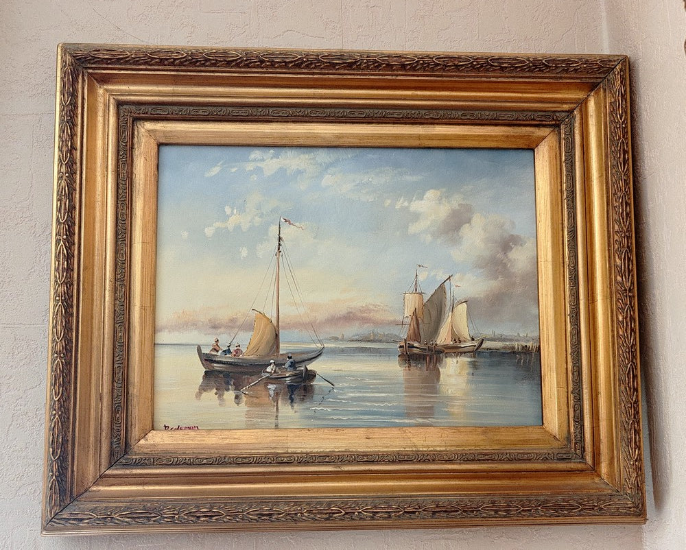 Rêver les yeux ouverts. Ce tableau est une fenêtre ouverte sur un monde de calme et de sérénité. Laissez-vous bercer par le mouvement des vagues et la douceur de la lumière. Un instant de contemplation, capturé dans un cadre doré pour embellir votre quotidien.