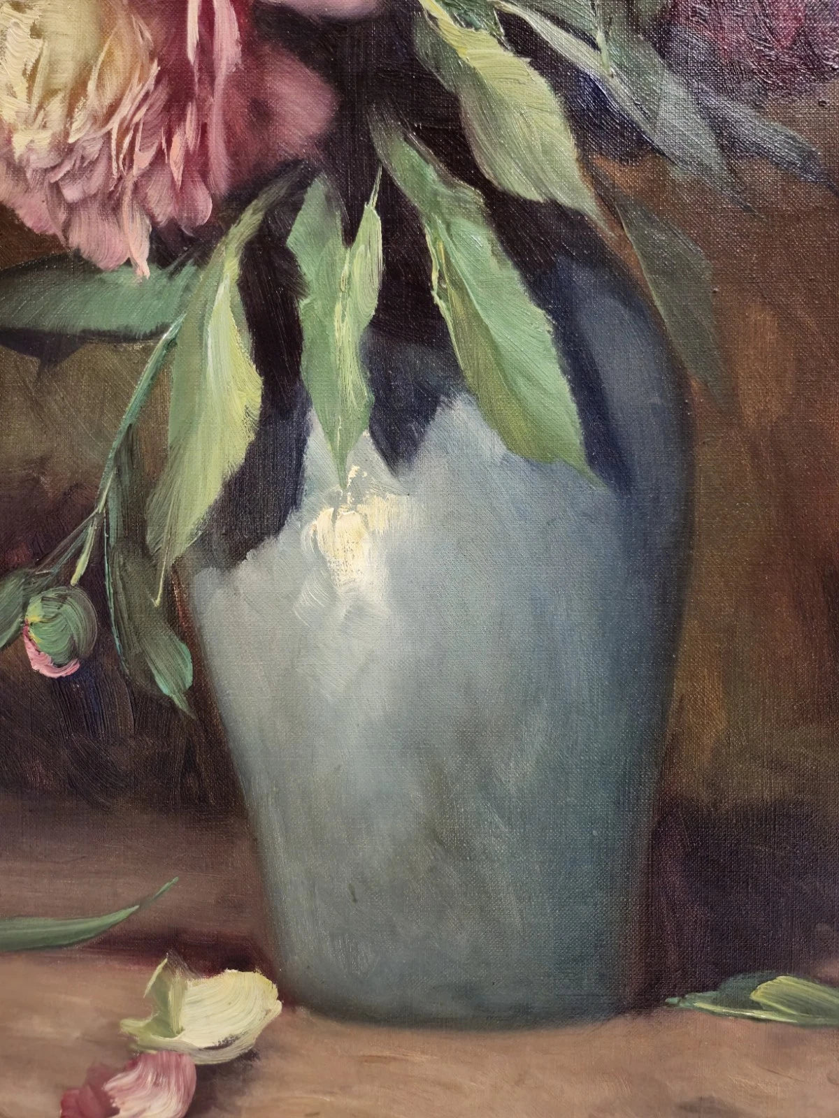 "Laissez-vous envoûter par la beauté luxuriante de ce bouquet de pivoines. Des couleurs riches et profondes, une composition harmonieuse, une émotion palpable... Cette œuvre d'art vous transportera dans un univers de poésie et de douceur. Offrez-vous un morceau de beauté éternelle."