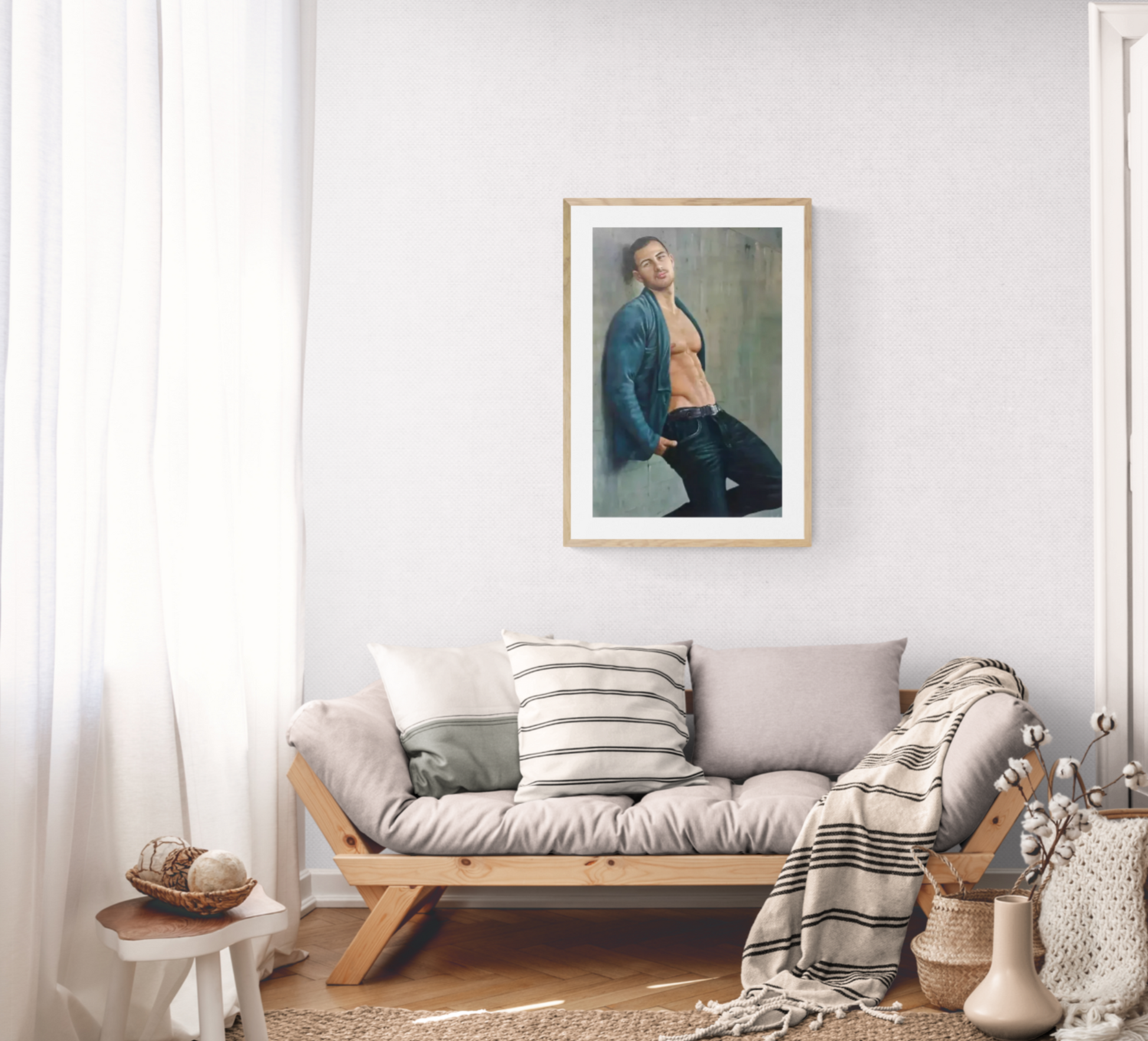 erotic art portrait of shirtless man original oil painting on canvas signed