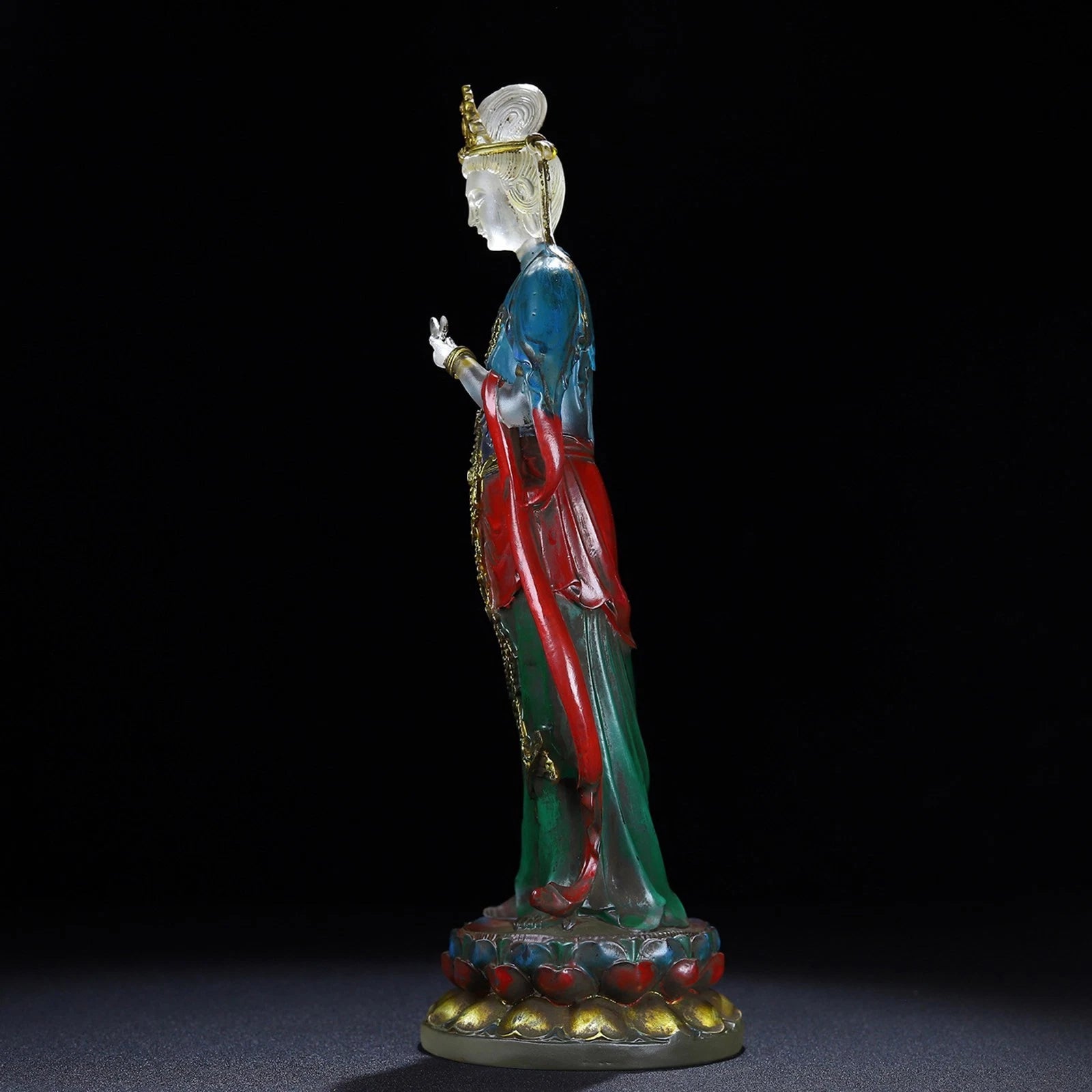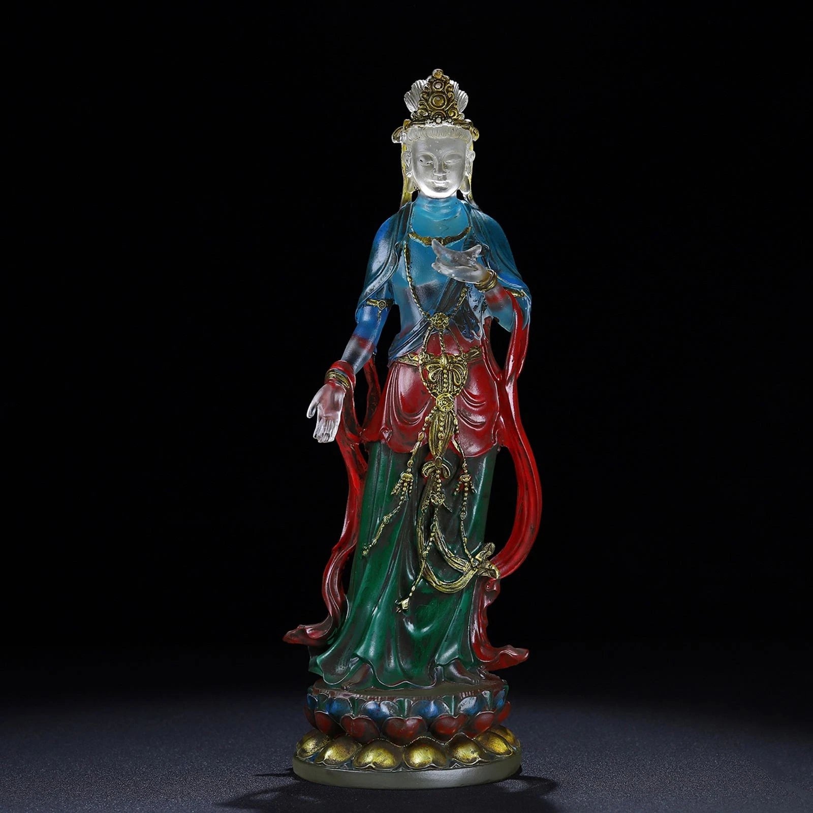 Trouvez la paix intérieure avec notre statuette de Guan Yin. Exquise et détaillée, cette représentation de la déesse de la compassion apportera sérénité et harmonie à votre espace. Fabriquée avec soin, sa beauté envoûtante vous transportera dans un monde de paix et de contemplation. Offrez-vous un moment de sérénité chaque jour.