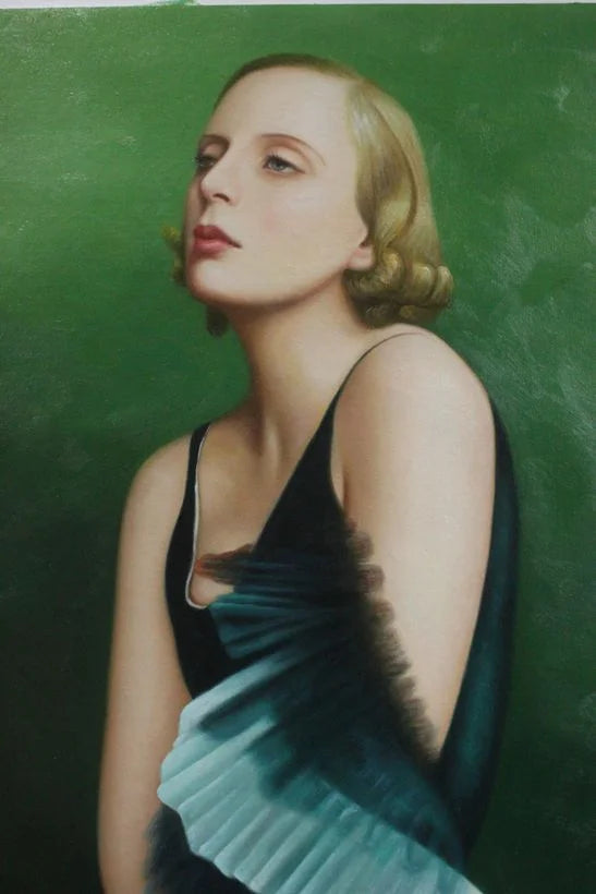 Autoportrait féminin réalisé à l'huile sur toile, incarnant l'élégance intemporelle du style Art Déco. Cette œuvre capture l'essence de la féminité avec des lignes épurées et des formes géométriques caractéristiques du mouvement. Les teintes harmonieuses et la composition équilibrée reflètent la sophistication de cette période artistique majeure. Une pièce d'exception pour les collectionneurs appréciant l'art figuratif et les mouvements modernistes du XXe siècle. Kikooyou Art Gallery